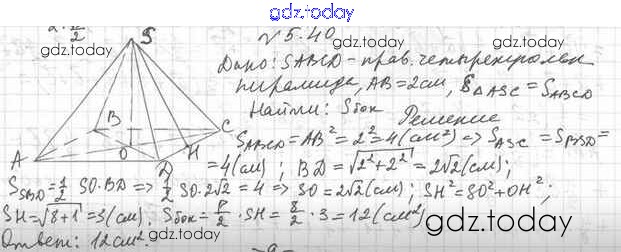 Ответы к Решение к §5 5.40 Учебнику по Геометрии для 11 класса Мерзляк, Номировский Базовый уровень Вентана-граф Алгоритм успеха 2019