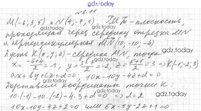 Ответы к Решение к §6 6.11 Учебнику по Геометрии для 11 класса Мерзляк, Номировский Базовый уровень Вентана-граф Алгоритм успеха 2019