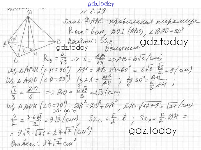 Ответы к Решение к §6 6.29 Учебнику по Геометрии для 11 класса Мерзляк, Номировский Базовый уровень Вентана-граф Алгоритм успеха 2019