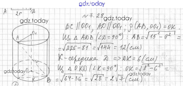 Ответы к Решение к §7 7.28 Учебнику по Геометрии для 11 класса Мерзляк, Номировский Базовый уровень Вентана-граф Алгоритм успеха 2019