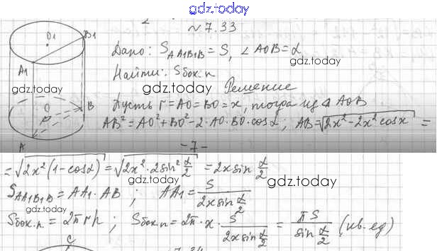 Ответы к Решение к §7 7.33 Учебнику по Геометрии для 11 класса Мерзляк, Номировский Базовый уровень Вентана-граф Алгоритм успеха 2019