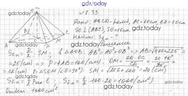 Ответы к Решение к §8 8.33 Учебнику по Геометрии для 11 класса Мерзляк, Номировский Базовый уровень Вентана-граф Алгоритм успеха 2019