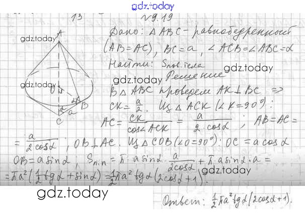 Ответы к Решение к §9 9.19 Учебнику по Геометрии для 11 класса Мерзляк, Номировский Базовый уровень Вентана-граф Алгоритм успеха 2019