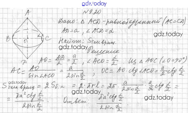 Ответы к Решение к §9 9.20 Учебнику по Геометрии для 11 класса Мерзляк, Номировский Базовый уровень Вентана-граф Алгоритм успеха 2019
