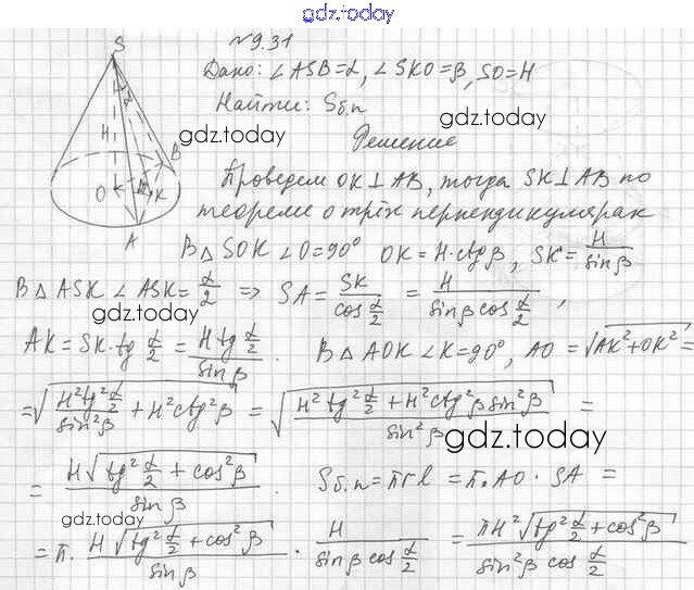 Ответы к Решение к §9 9.31 Учебнику по Геометрии для 11 класса Мерзляк, Номировский Базовый уровень Вентана-граф Алгоритм успеха 2019