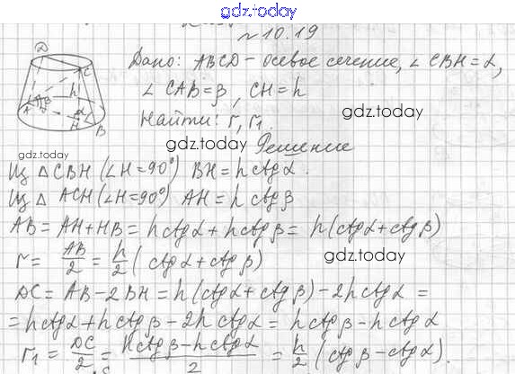 Ответы к Решение к §10 10.19 Учебнику по Геометрии для 11 класса Мерзляк, Номировский Базовый уровень Вентана-граф Алгоритм успеха 2019