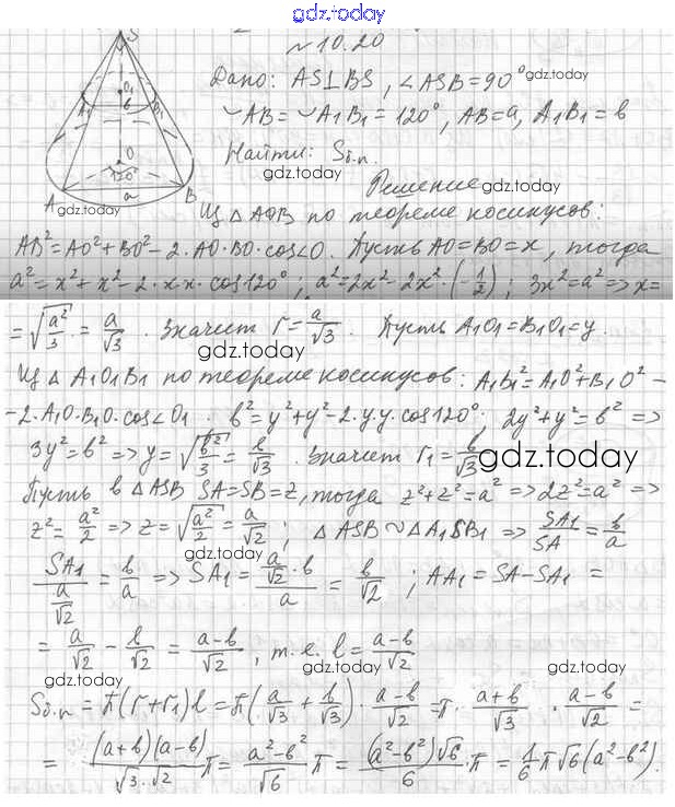 Ответы к Решение к §10 10.20 Учебнику по Геометрии для 11 класса Мерзляк, Номировский Базовый уровень Вентана-граф Алгоритм успеха 2019