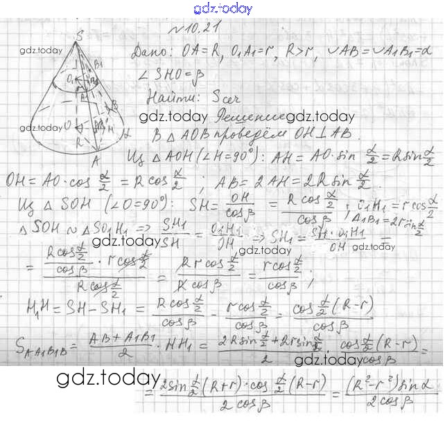 Ответы к Решение к §10 10.21 Учебнику по Геометрии для 11 класса Мерзляк, Номировский Базовый уровень Вентана-граф Алгоритм успеха 2019