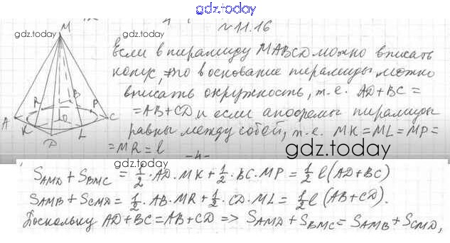 Ответы к Решение к §11 11.16 Учебнику по Геометрии для 11 класса Мерзляк, Номировский Базовый уровень Вентана-граф Алгоритм успеха 2019