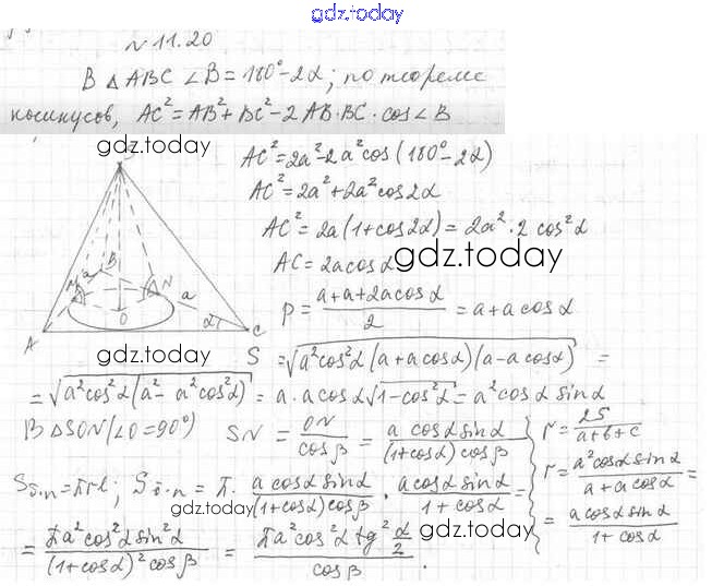 Ответы к Решение к §11 11.20 Учебнику по Геометрии для 11 класса Мерзляк, Номировский Базовый уровень Вентана-граф Алгоритм успеха 2019