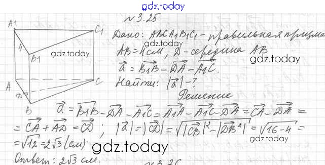 Ответы к Решение к §3 3.25 Учебнику по Геометрии для 11 класса Мерзляк, Номировский Углубленный уровень Вентана-граф Алгоритм успеха 2019