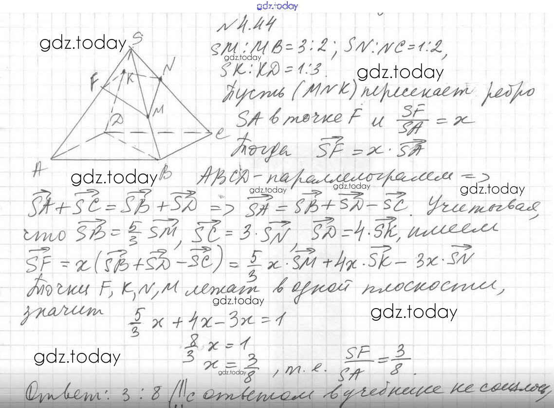 Ответы к Решение к §4 4.44 Учебнику по Геометрии для 11 класса Мерзляк, Номировский Углубленный уровень Вентана-граф Алгоритм успеха 2019