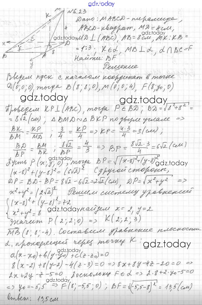 Ответы к Решение к §6 6.23 Учебнику по Геометрии для 11 класса Мерзляк, Номировский Углубленный уровень Вентана-граф Алгоритм успеха 2019
