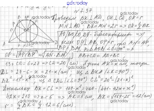 На страницах сайта gdz.today вы найдете учебный и вспомогательный материал, направленный на улучшения знаний школьной программы. ГДЗ - онлайн мир знаний Решение к §7 7.37 Учебнику по Геометрии для 11 класса Мерзляк, Номировский Углубленный уровень Вентана-граф Алгоритм успеха 2019