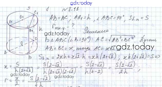 Ответы к Решение к §8 8.18 Учебнику по Геометрии для 11 класса Мерзляк, Номировский Углубленный уровень Вентана-граф Алгоритм успеха 2019