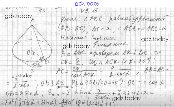Ответы к Решение к §9 9.15 Учебнику по Геометрии для 11 класса Мерзляк, Номировский Углубленный уровень Вентана-граф Алгоритм успеха 2019