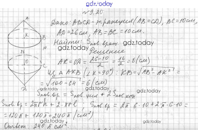 Ответы к Решение к §9 9.20 Учебнику по Геометрии для 11 класса Мерзляк, Номировский Углубленный уровень Вентана-граф Алгоритм успеха 2019