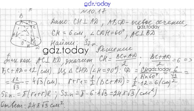 Ответы к Решение к §10 10.17 Учебнику по Геометрии для 11 класса Мерзляк, Номировский Углубленный уровень Вентана-граф Алгоритм успеха 2019