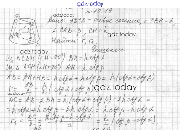Ответы к Решение к §10 10.19 Учебнику по Геометрии для 11 класса Мерзляк, Номировский Углубленный уровень Вентана-граф Алгоритм успеха 2019