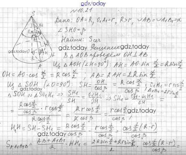 Ответы к Решение к §10 10.21 Учебнику по Геометрии для 11 класса Мерзляк, Номировский Углубленный уровень Вентана-граф Алгоритм успеха 2019