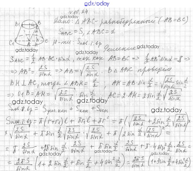 Ответы к Решение к §10 10.24 Учебнику по Геометрии для 11 класса Мерзляк, Номировский Углубленный уровень Вентана-граф Алгоритм успеха 2019