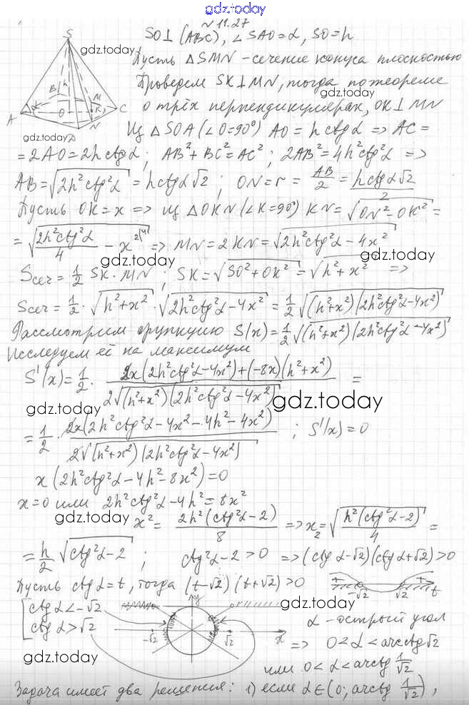 Ответы к Решение к §11 11.27 Учебнику по Геометрии для 11 класса Мерзляк, Номировский Углубленный уровень Вентана-граф Алгоритм успеха 2019