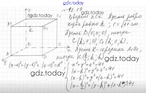 Ответы к Решение к §12 12.19 Учебнику по Геометрии для 11 класса Мерзляк, Номировский Углубленный уровень Вентана-граф Алгоритм успеха 2019