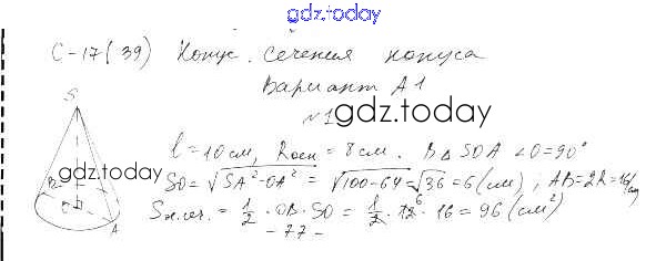 Ответы к СР-17(39). Варианты Самостоятельные работы А1 Самостоятельным и контрольным работам по Геометрии для 11 класса Ершова, Голобородько Илекса 2004
