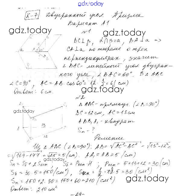 Ответы к КР-7. Варианты Контрольные работы А1 Самостоятельным и контрольным работам по Геометрии для 11 класса Ершова, Голобородько Илекса 2004