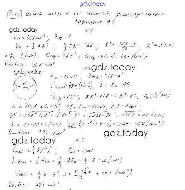 Ответы к СР-19. Варианты Самостоятельные работы А1 Самостоятельным и контрольным работам по Геометрии для 11 класса Ершова, Голобородько Илекса 2004