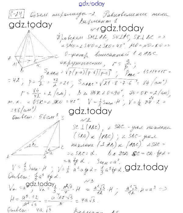 Ответы к СР-24. Варианты Самостоятельные работы А1 Самостоятельным и контрольным работам по Геометрии для 11 класса Ершова, Голобородько Илекса 2004