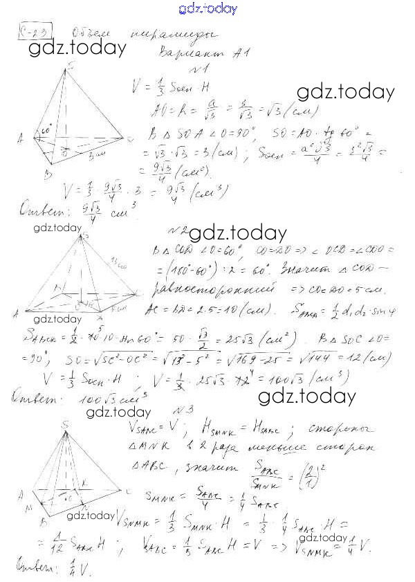 Ответы к СР-23. Варианты Самостоятельные работы А1 Самостоятельным и контрольным работам по Геометрии для 11 класса Ершова, Голобородько Илекса 2004