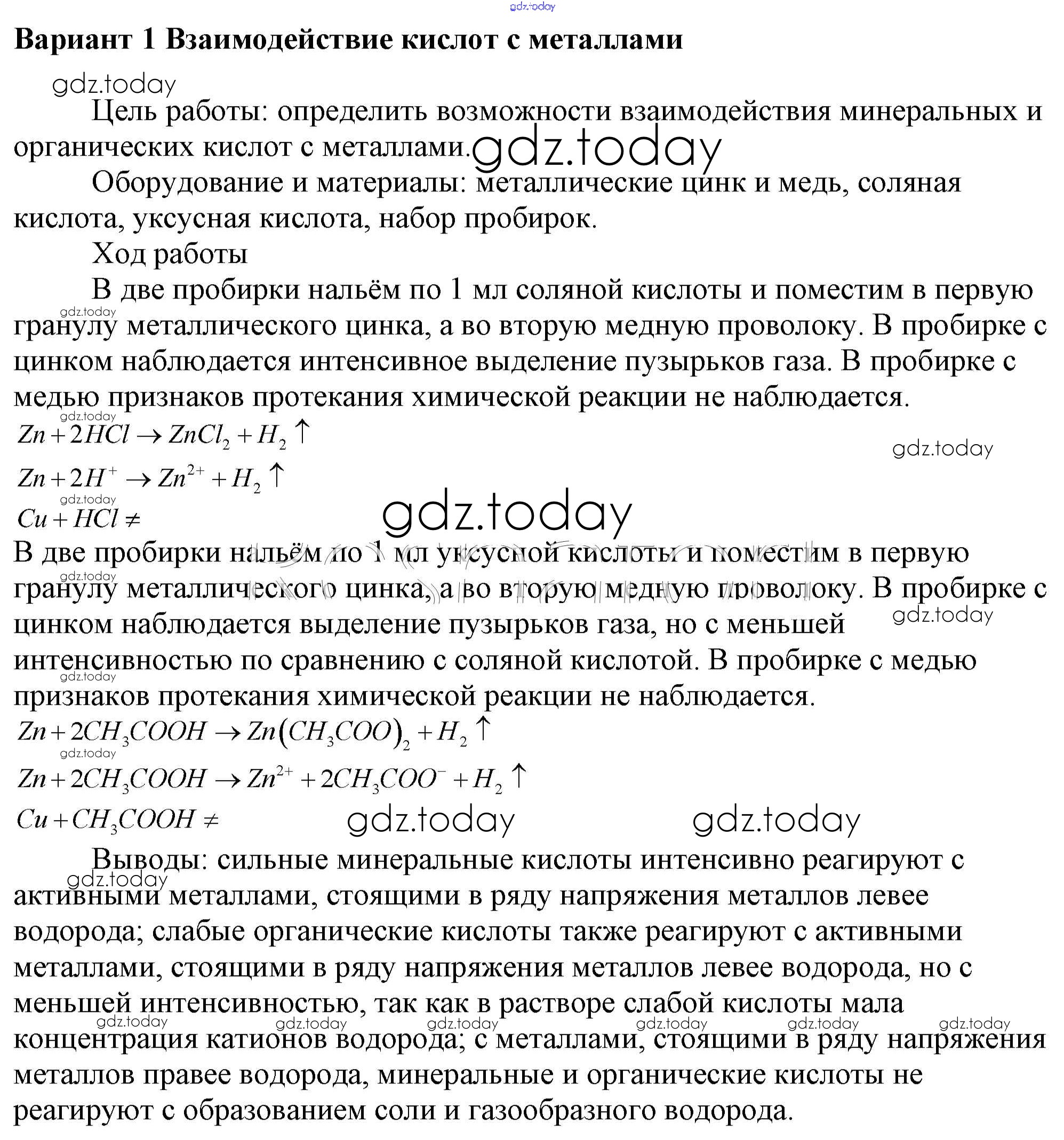 На страницах сайта gdz.today вы найдете учебный и вспомогательный материал, направленный на улучшения знаний школьной программы. ГДЗ - онлайн мир знаний Решение к практической работе 2. "Химические свойства кислот" 1 Учебнику по Химии для 11 класса Габриелян Базовый уровень Дрофа Вертикаль 2013