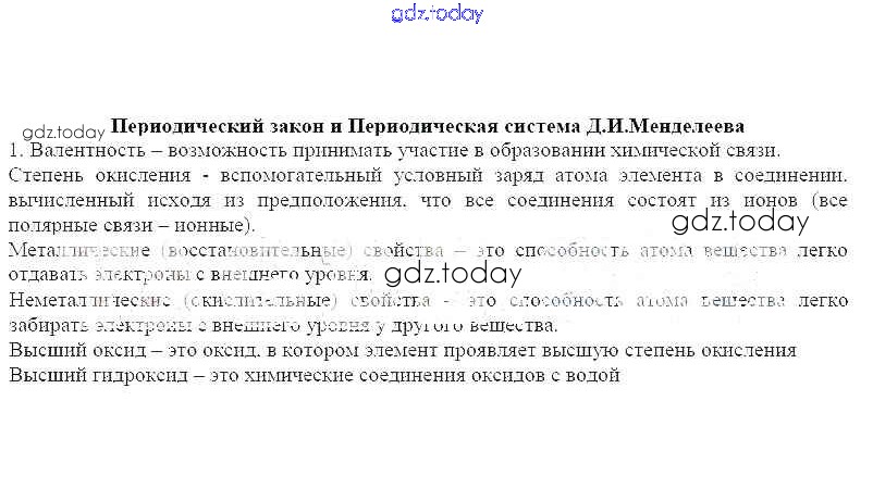 На страницах сайта gdz.today вы найдете учебный и вспомогательный материал, направленный на улучшения знаний школьной программы. ГДЗ - онлайн мир знаний Решение к теме: Периодический закон и Периодическая система Менделеева 1 Рабочей тетради по Химии для 11 класса Габриелян, Яшукова Базовый уровень Дрофа 2014