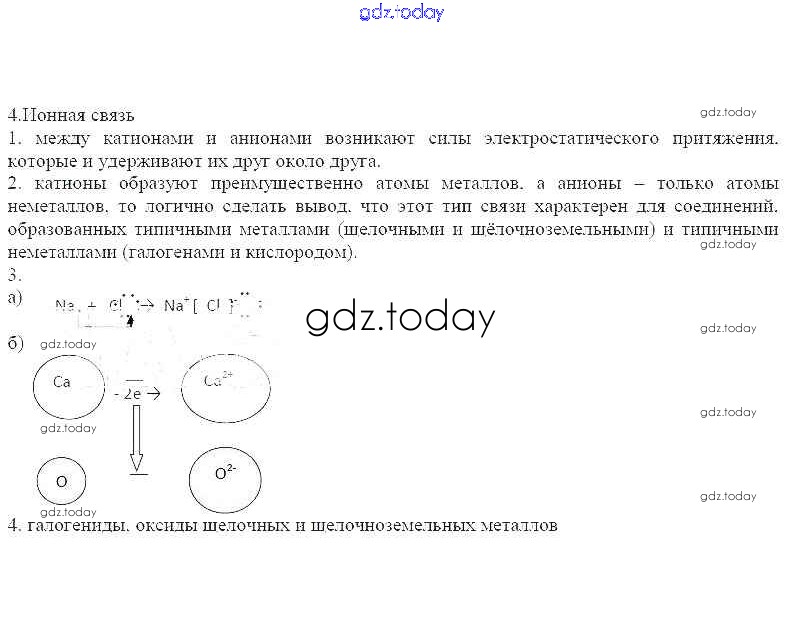 Ответы к Решение к теме: Ионная связь. Ионная кристаллическая решетка 4 Рабочей тетради по Химии для 11 класса Габриелян, Яшукова Базовый уровень Дрофа 2014