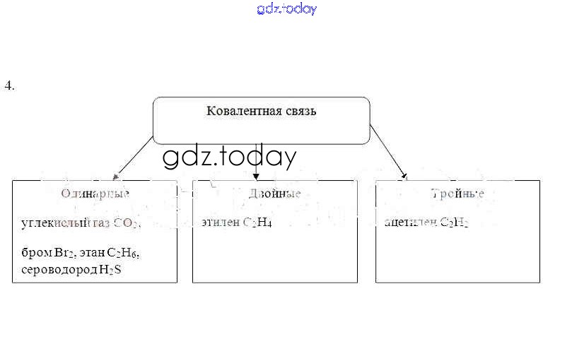 На страницах сайта gdz.today вы найдете учебный и вспомогательный материал, направленный на улучшения знаний школьной программы. ГДЗ - онлайн мир знаний Решение к теме: Ковалентная связь. Атомная и молекулярная кристаллические решеткисвязь. Ионная кристаллическая решетка 4 Рабочей тетради по Химии для 11 класса Габриелян, Яшукова Базовый уровень Дрофа 2014