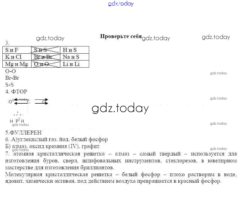 На страницах сайта gdz.today вы найдете учебный и вспомогательный материал, направленный на улучшения знаний школьной программы. ГДЗ - онлайн мир знаний Решение к теме: Ковалентная связь. Атомная и молекулярная кристаллические решеткисвязь. Ионная кристаллическая решетка Проверьте себя Рабочей тетради по Химии для 11 класса Габриелян, Яшукова Базовый уровень Дрофа 2014