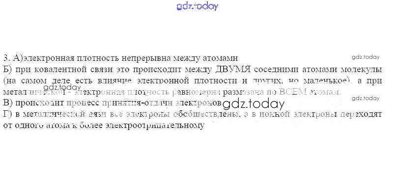 На страницах сайта gdz.today вы найдете учебный и вспомогательный материал, направленный на улучшения знаний школьной программы. ГДЗ - онлайн мир знаний Решение к теме: Металлическая связь. Металлические кристаллические решетки 3 Рабочей тетради по Химии для 11 класса Габриелян, Яшукова Базовый уровень Дрофа 2014