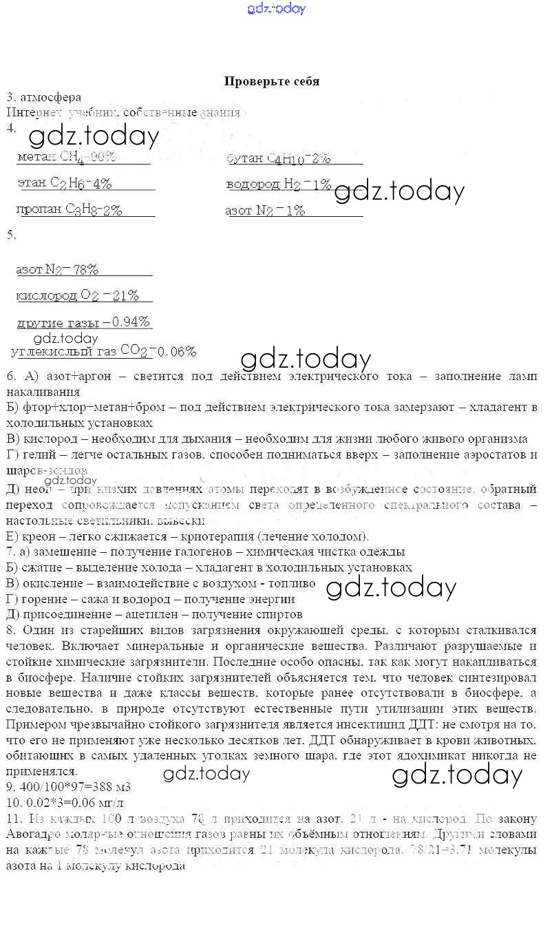 На страницах сайта gdz.today вы найдете учебный и вспомогательный материал, направленный на улучшения знаний школьной программы. ГДЗ - онлайн мир знаний Решение к теме: Газообразное состояние вещества. Природные газообразные смеси - воздух и природный газ Проверьте себя Рабочей тетради по Химии для 11 класса Габриелян, Яшукова Базовый уровень Дрофа 2014