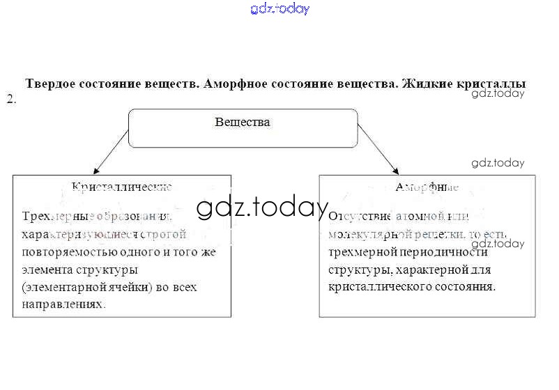 На страницах сайта gdz.today вы найдете учебный и вспомогательный материал, направленный на улучшения знаний школьной программы. ГДЗ - онлайн мир знаний Решение к теме: Твердое состояние веществ. Аморфное состояние вещества. Жидкие кристаллы 2 Рабочей тетради по Химии для 11 класса Габриелян, Яшукова Базовый уровень Дрофа 2014