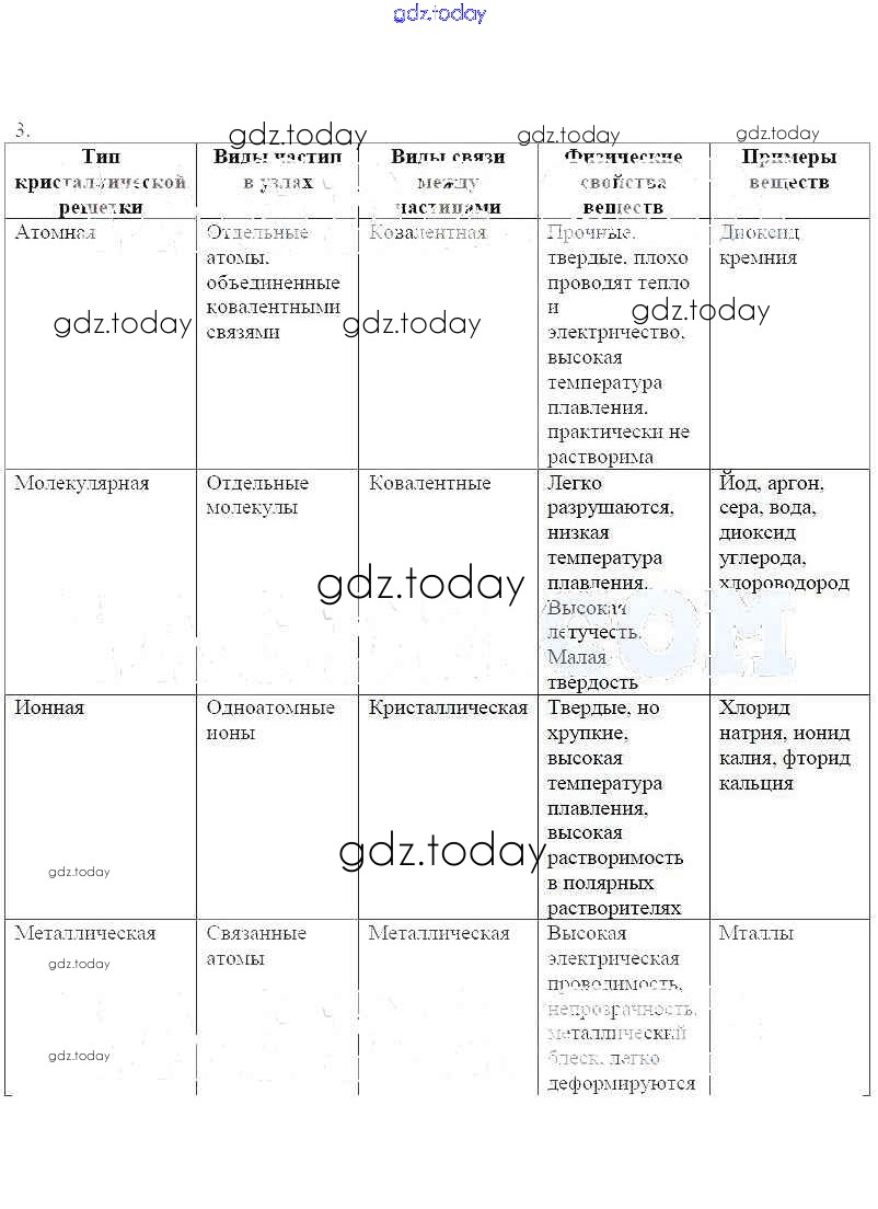 Ответы к Решение к теме: Твердое состояние веществ. Аморфное состояние вещества. Жидкие кристаллы 3 Рабочей тетради по Химии для 11 класса Габриелян, Яшукова Базовый уровень Дрофа 2014