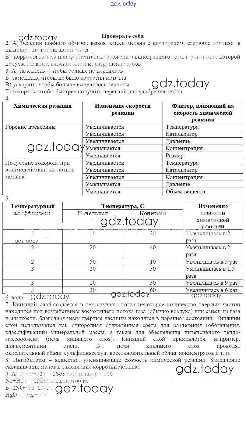 На страницах сайта gdz.today вы найдете учебный и вспомогательный материал, направленный на улучшения знаний школьной программы. ГДЗ - онлайн мир знаний Решение к теме: Скорость химической реакции Проверьте себя Рабочей тетради по Химии для 11 класса Габриелян, Яшукова Базовый уровень Дрофа 2014