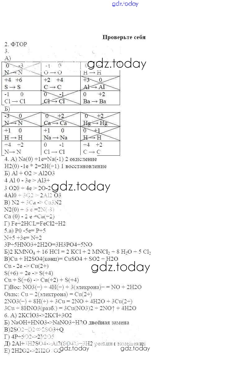 На страницах сайта gdz.today вы найдете учебный и вспомогательный материал, направленный на улучшения знаний школьной программы. ГДЗ - онлайн мир знаний Решение к теме: Окислительно-восстановительные реакции Проверьте себя Рабочей тетради по Химии для 11 класса Габриелян, Яшукова Базовый уровень Дрофа 2014