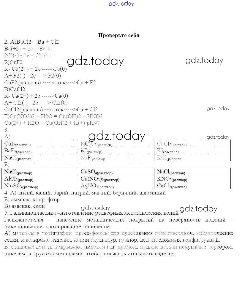 На страницах сайта gdz.today вы найдете учебный и вспомогательный материал, направленный на улучшения знаний школьной программы. ГДЗ - онлайн мир знаний Решение к теме: Электролиз Проверьте себя Рабочей тетради по Химии для 11 класса Габриелян, Яшукова Базовый уровень Дрофа 2014