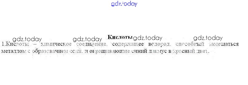 Ответы к Решение к теме: Кислоты 1 Рабочей тетради по Химии для 11 класса Габриелян, Яшукова Базовый уровень Дрофа 2014