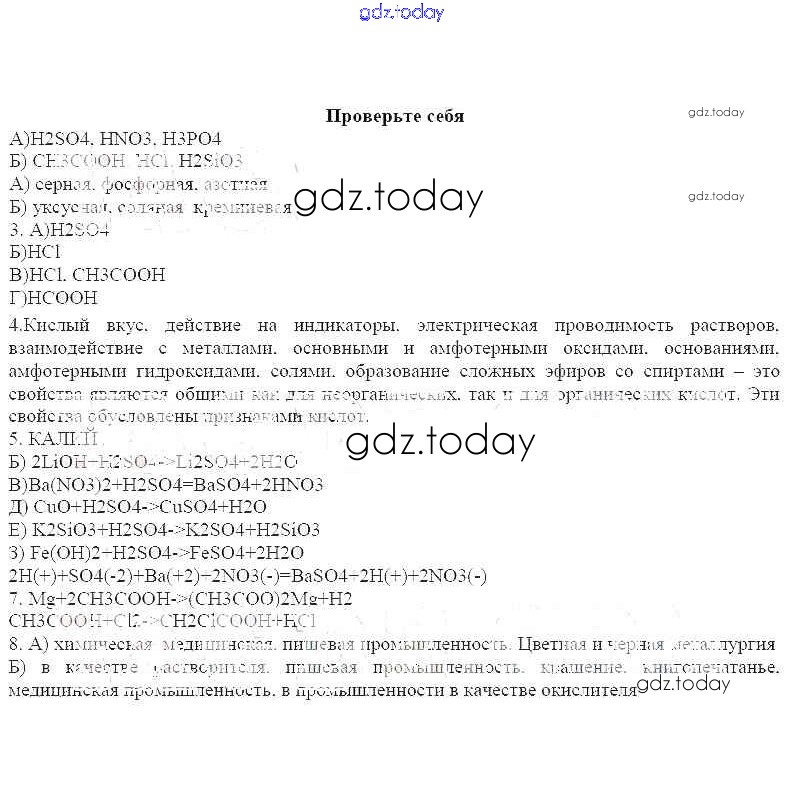 На страницах сайта gdz.today вы найдете учебный и вспомогательный материал, направленный на улучшения знаний школьной программы. ГДЗ - онлайн мир знаний Решение к теме: Кислоты Проверьте себя Рабочей тетради по Химии для 11 класса Габриелян, Яшукова Базовый уровень Дрофа 2014