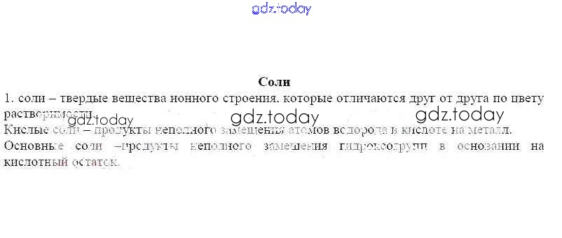 На страницах сайта gdz.today вы найдете учебный и вспомогательный материал, направленный на улучшения знаний школьной программы. ГДЗ - онлайн мир знаний Решение к теме: Соли 1 Рабочей тетради по Химии для 11 класса Габриелян, Яшукова Базовый уровень Дрофа 2014