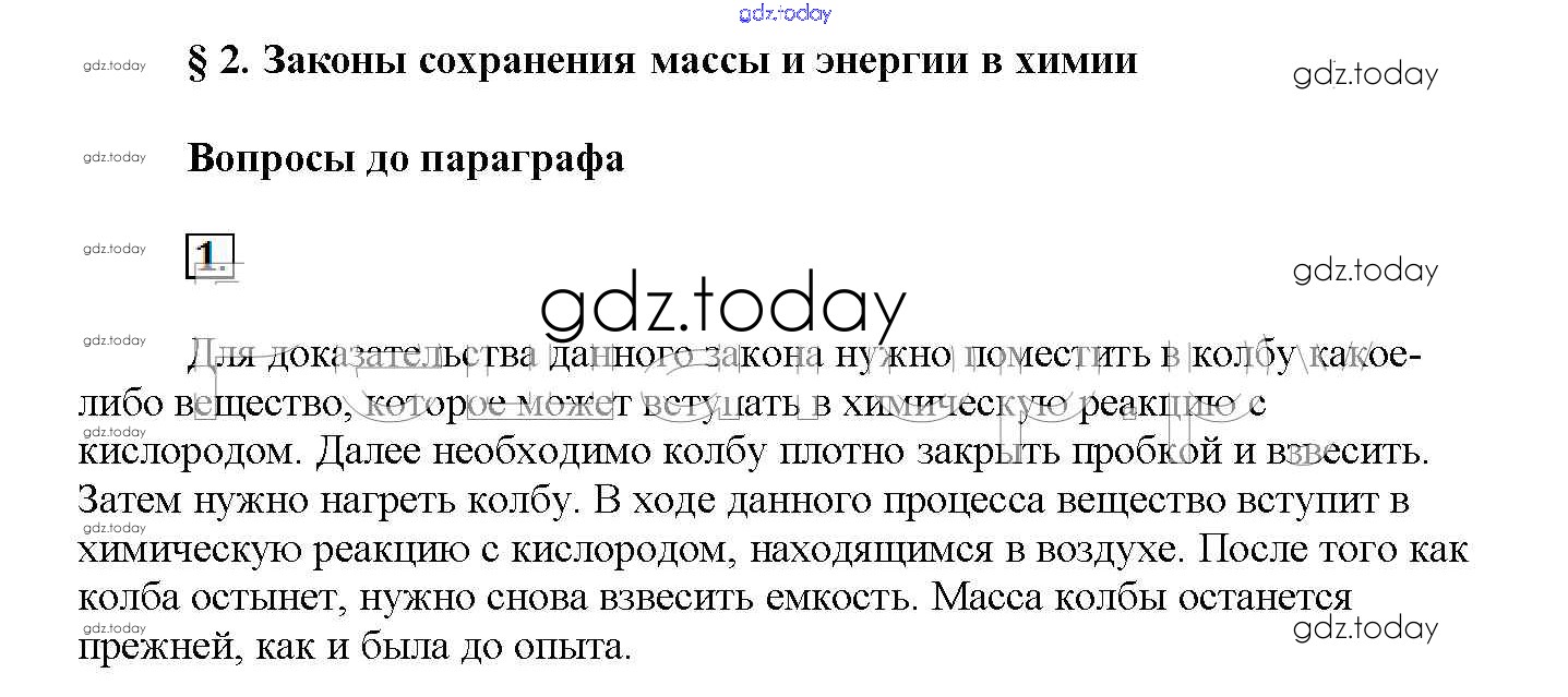 На страницах сайта gdz.today вы найдете учебный и вспомогательный материал, направленный на улучшения знаний школьной программы. ГДЗ - онлайн мир знаний Вопросы до параграфа Решение к § 2. Законы сохранения массы и энергии в химии 1 Учебнику по Химии для 11 класса Рудзитис, Фельдман Базовый уровень Просвещение 2017