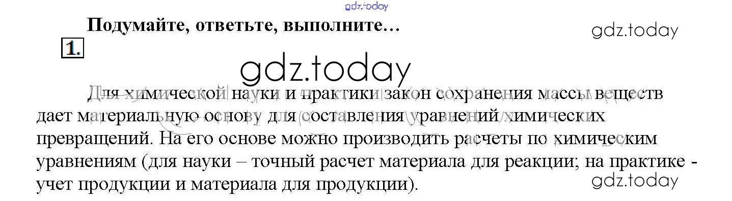 На страницах сайта gdz.today вы найдете учебный и вспомогательный материал, направленный на улучшения знаний школьной программы. ГДЗ - онлайн мир знаний Подумайте, ответьте, выполните Решение к § 2. Законы сохранения массы и энергии в химии 1 Учебнику по Химии для 11 класса Рудзитис, Фельдман Базовый уровень Просвещение 2017