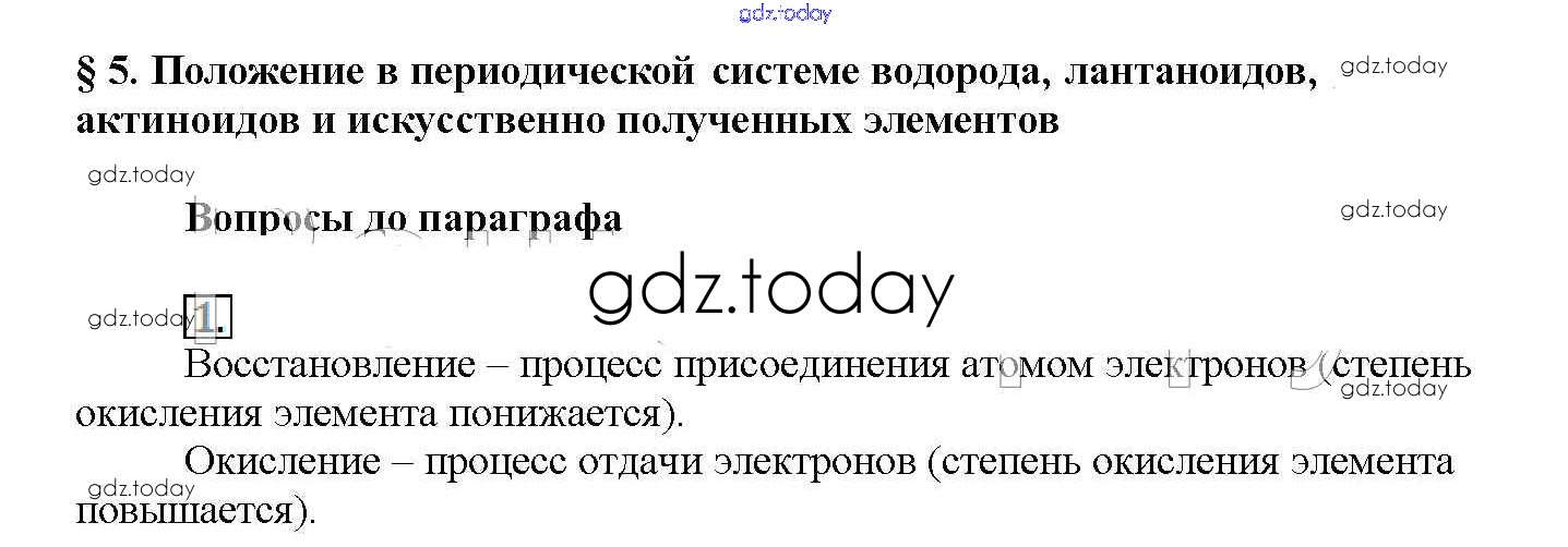 Ответы к Вопросы до параграфа Решение к § 5. Положение в периодической системе водорода, лантаноидов, актиноидов и искусственно полученных элементов 1 Учебнику по Химии для 11 класса Рудзитис, Фельдман Базовый уровень Просвещение 2017
